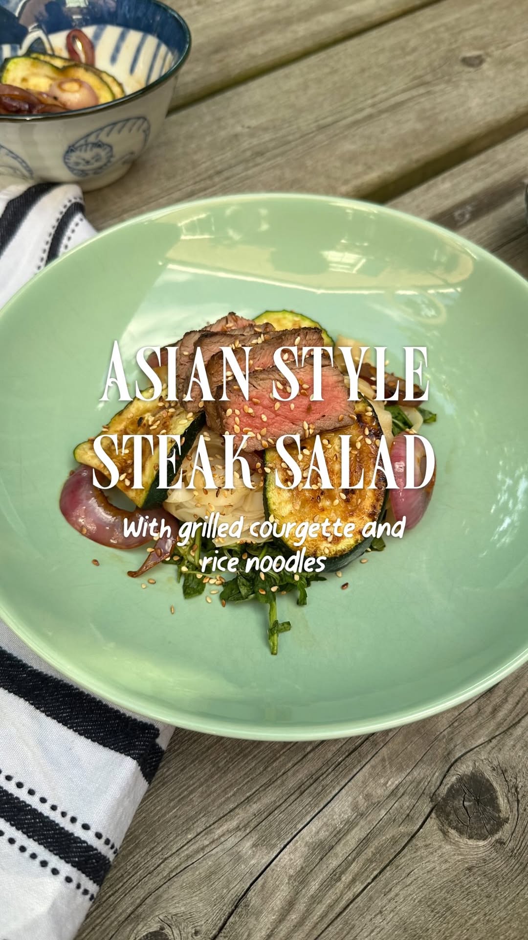 Aziatische steak salade met gegrilde courgette en rijstnoedels