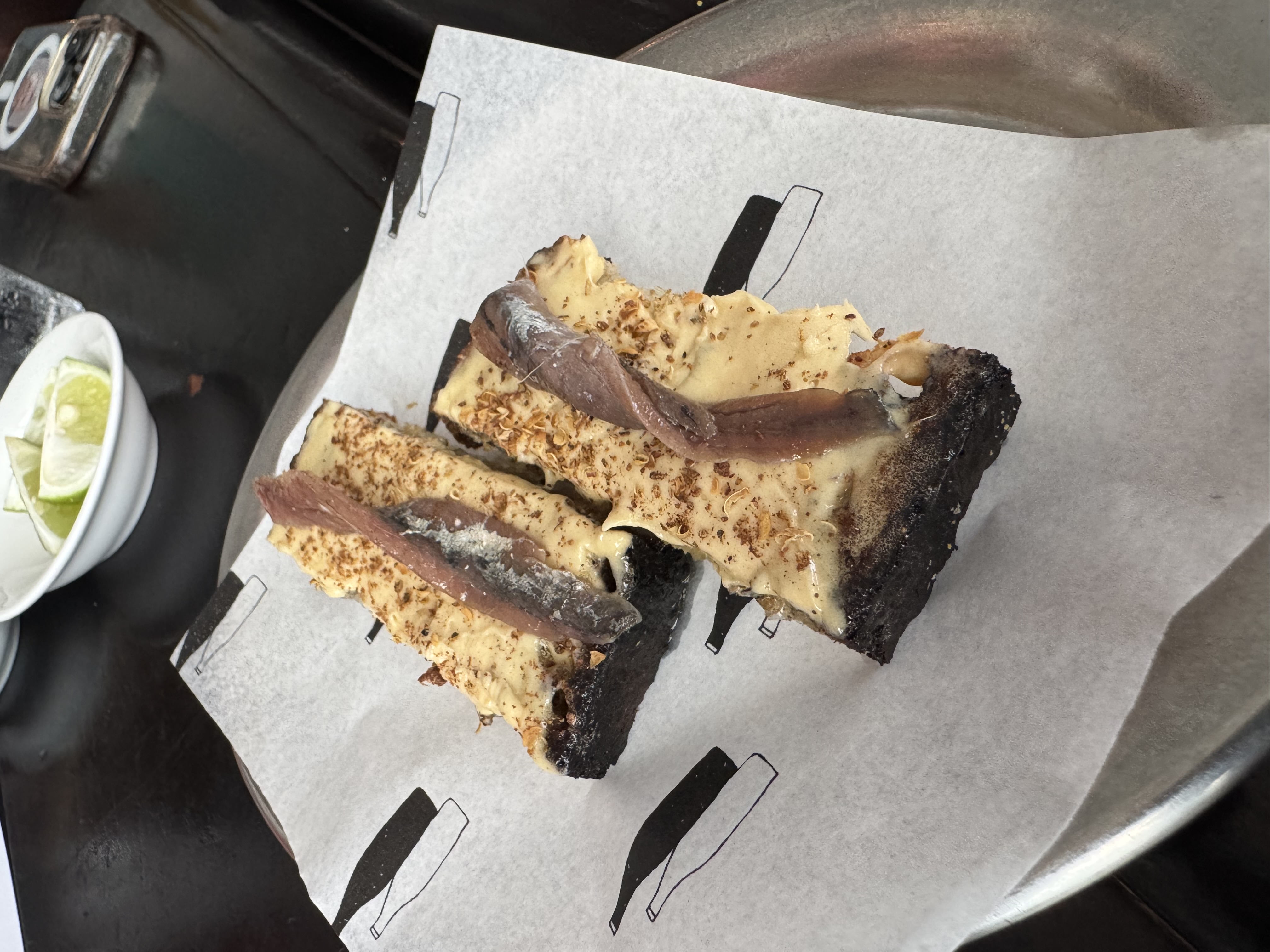 bruschetta met whipped shoyu burnt butter, ansjovis en sechuan peper