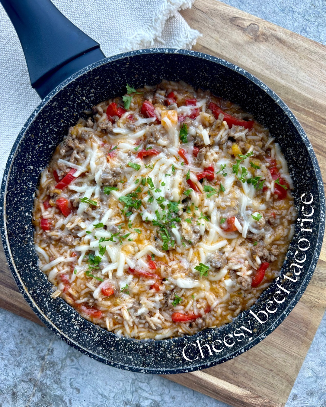 Cheesy Beef Taco Rice met Pompoen en Vegan Mozzarella
