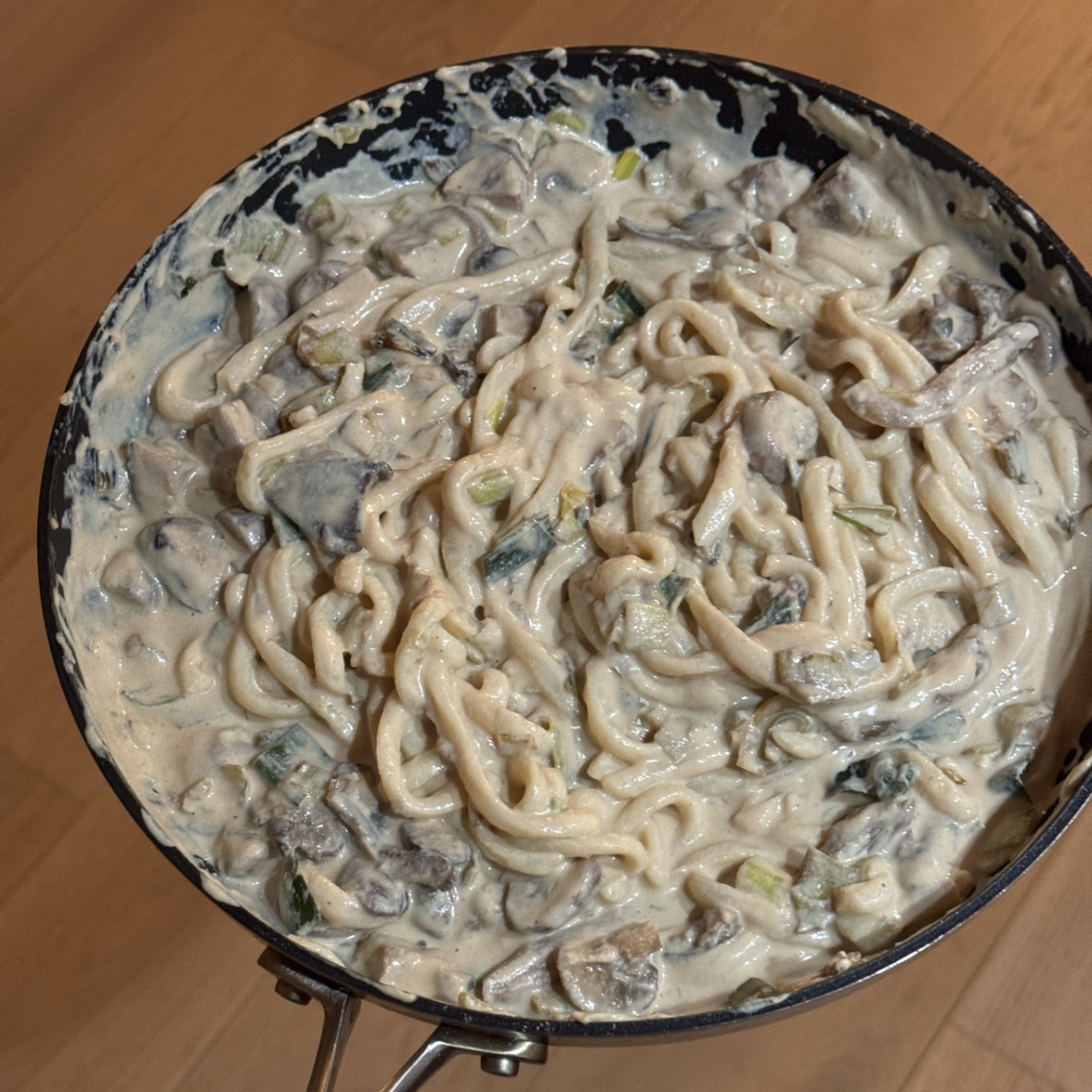 Creamy mushroom udon noodles