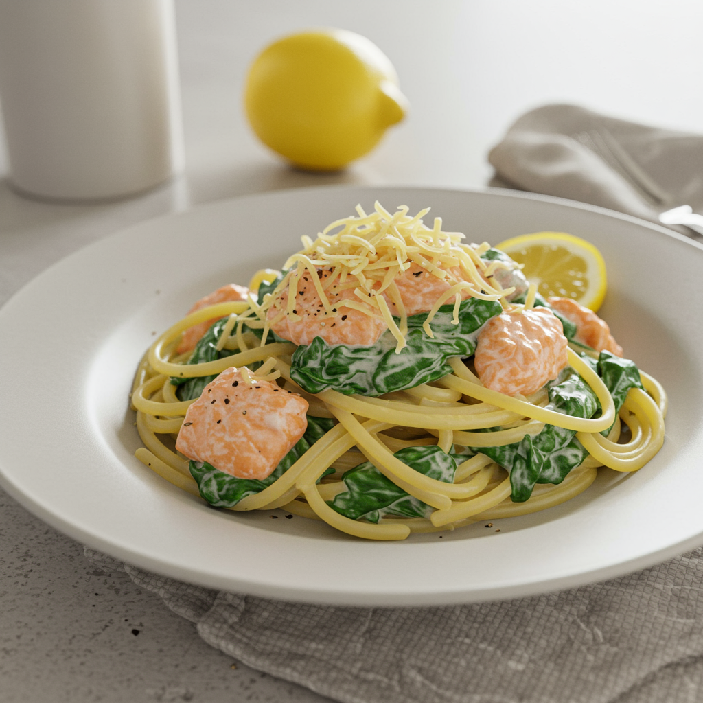 Feestelijke Romige Pasta Met Spinazie en Zalm