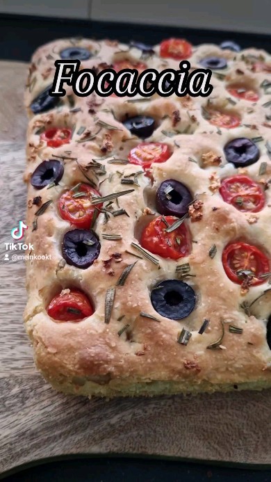 Focaccia met olijven en tomaat