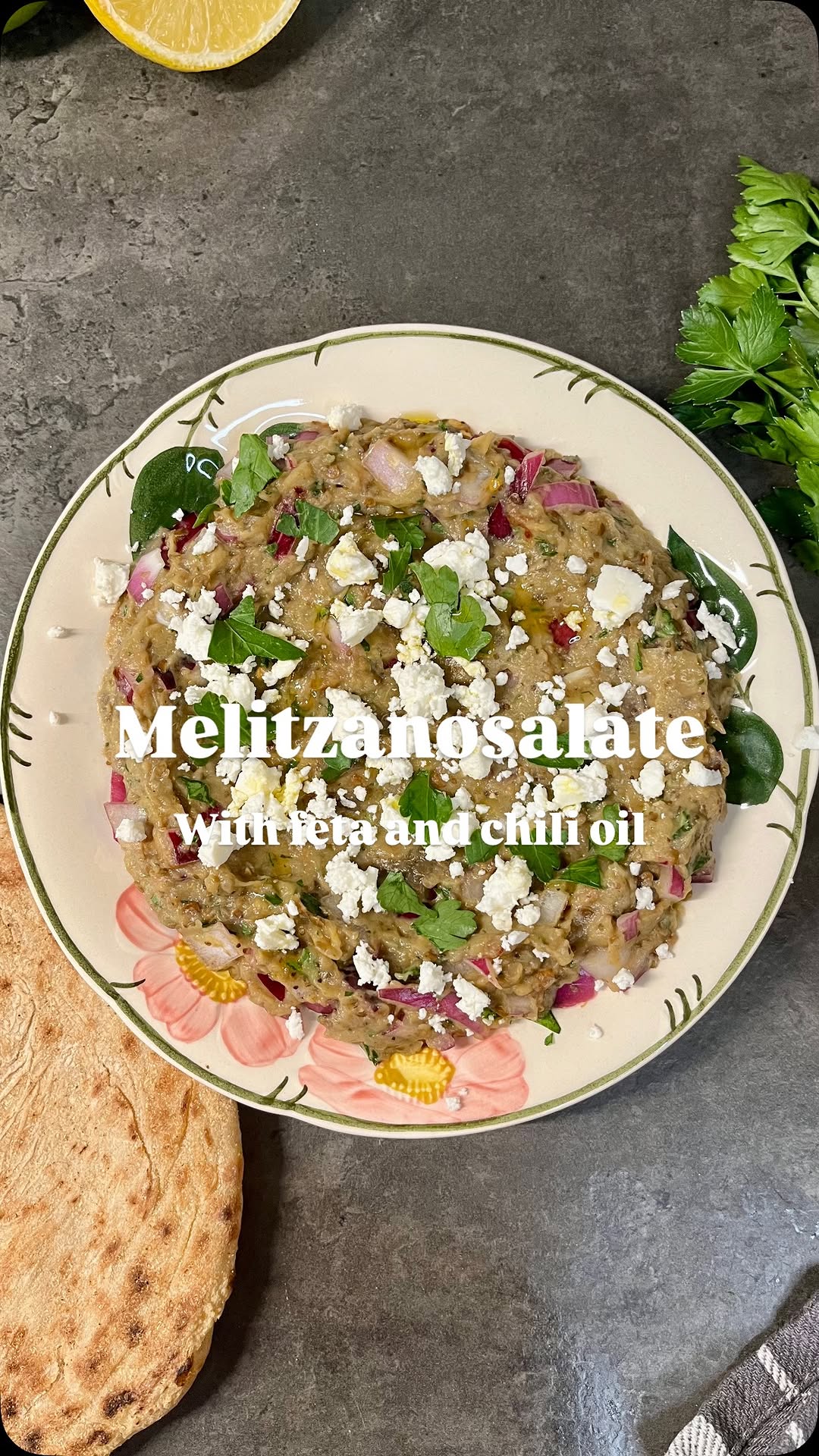 Griekse melitzanosalate met feta en chili-olie