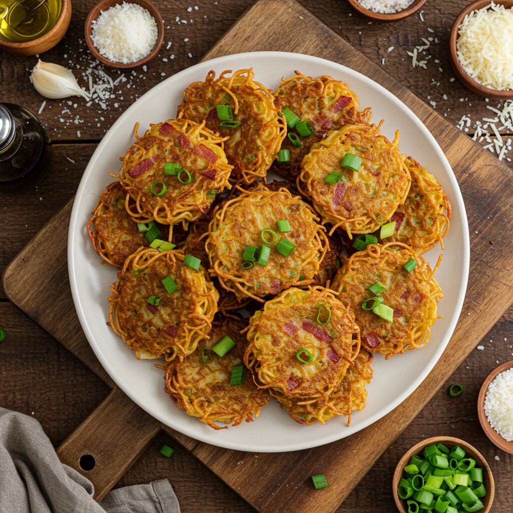 Krokante Spaghetti Fritters met Spek