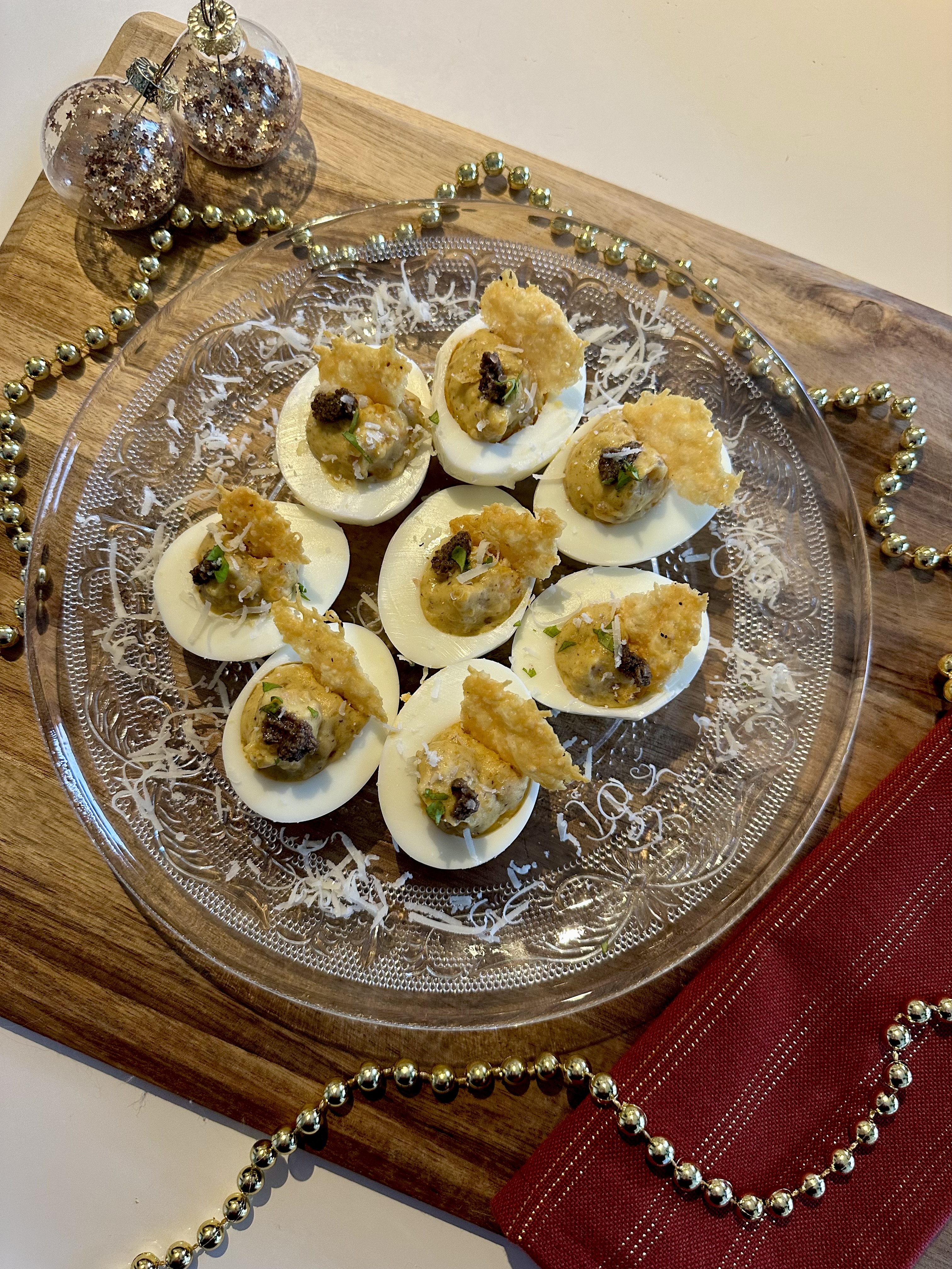 Luxe gevulde eitjes met truffel & Parmezaan crisps