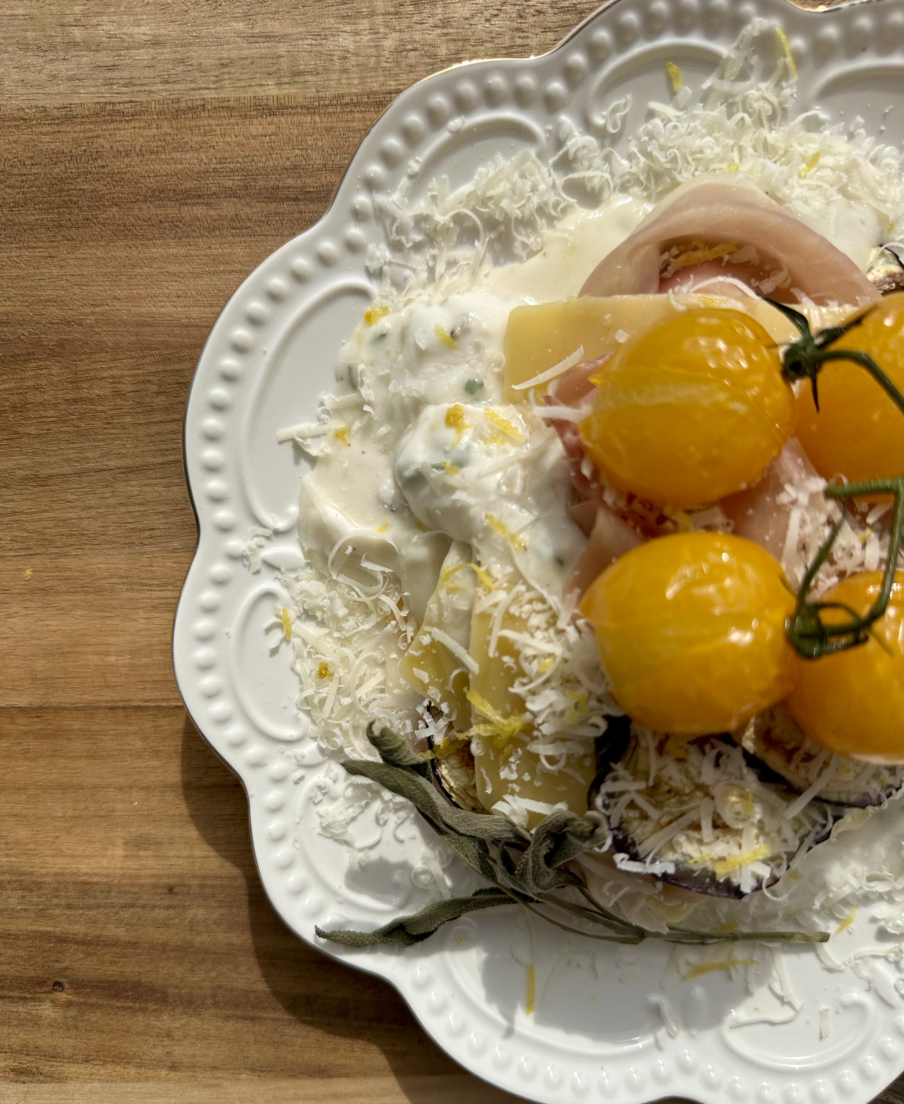 - 1 kleine aubergine (ca. 150 g, in dunne plakken)