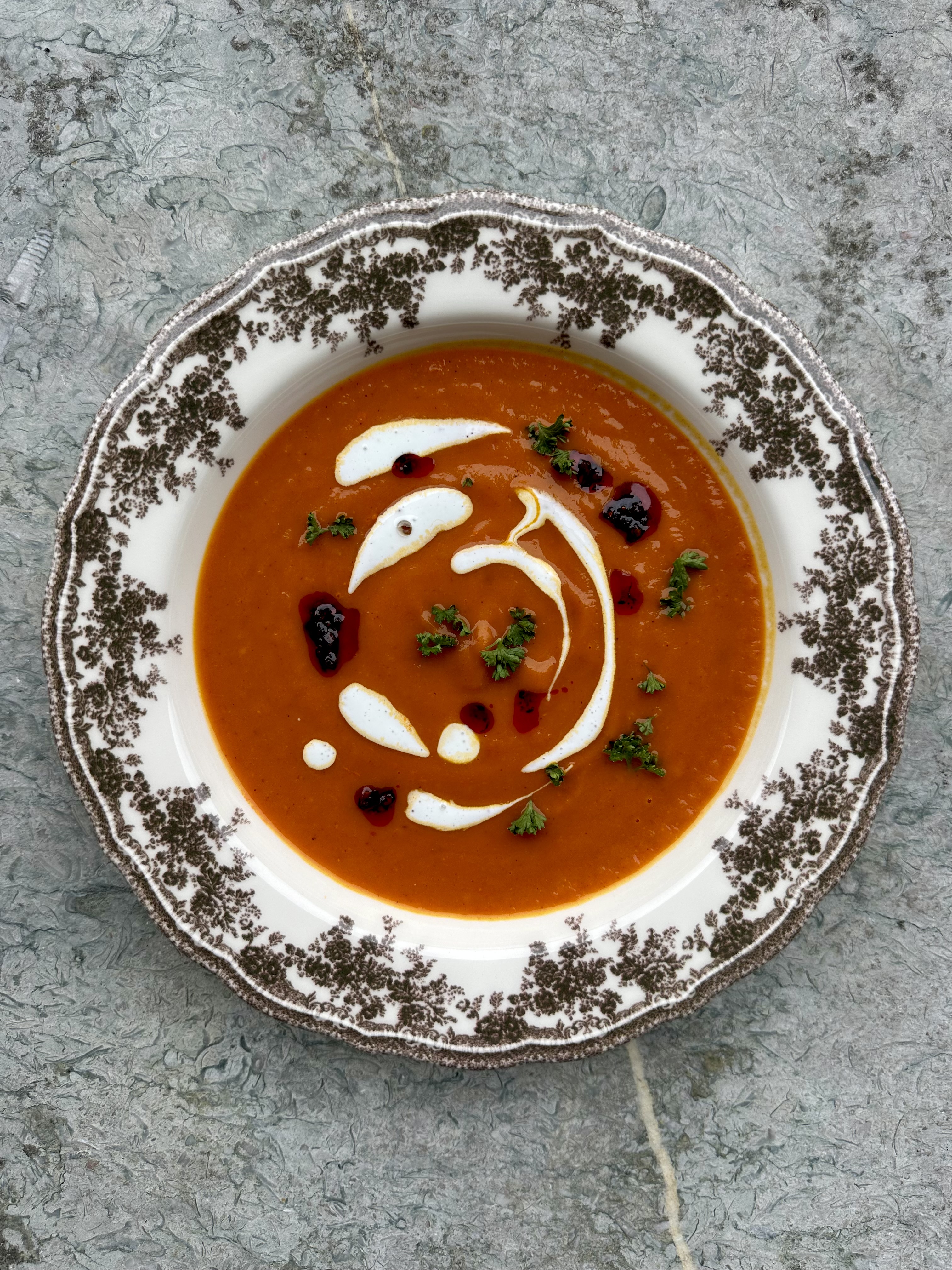Pompoen-paprika soep met pit