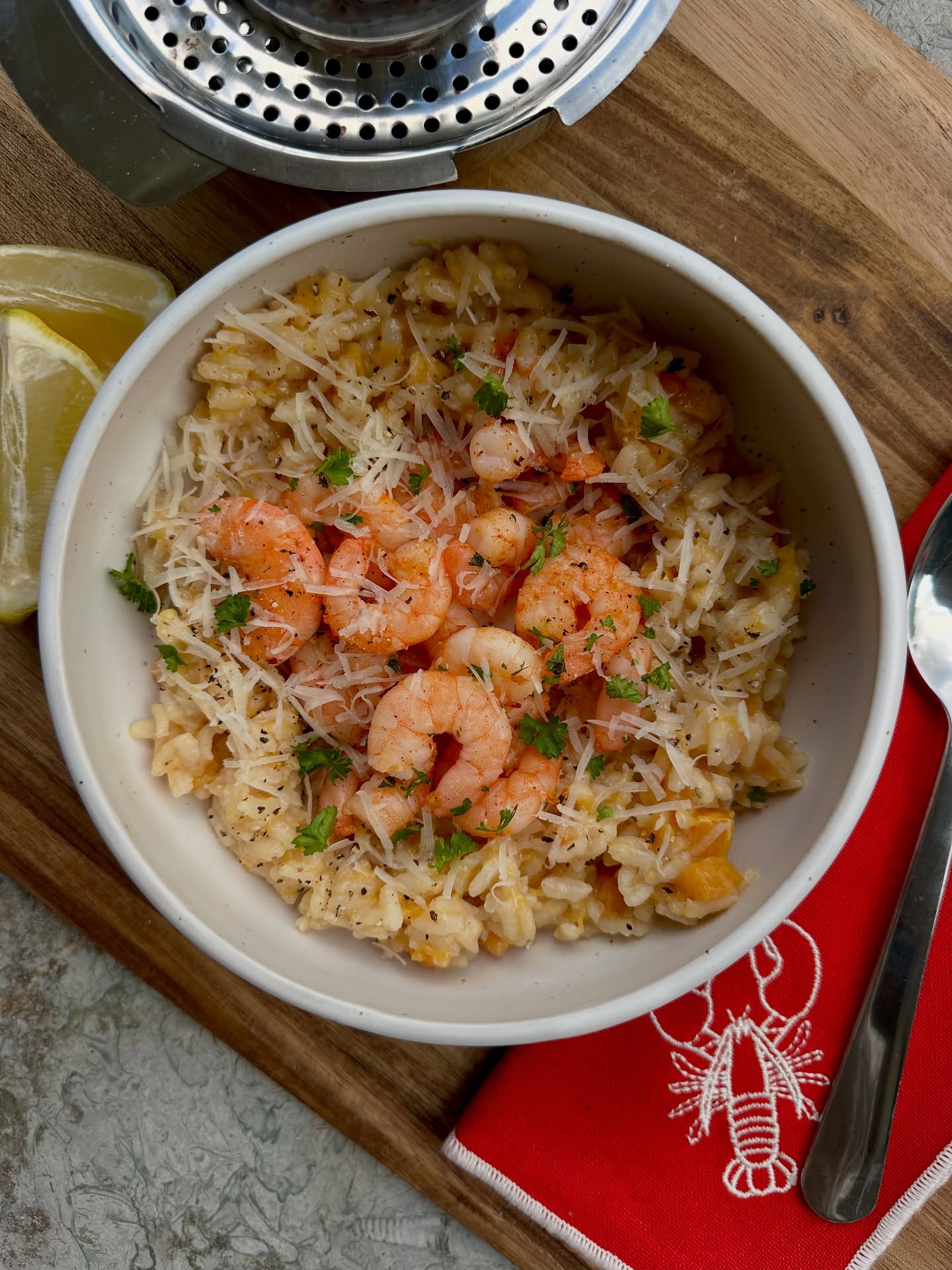 Risotto met garnalen en pompoen