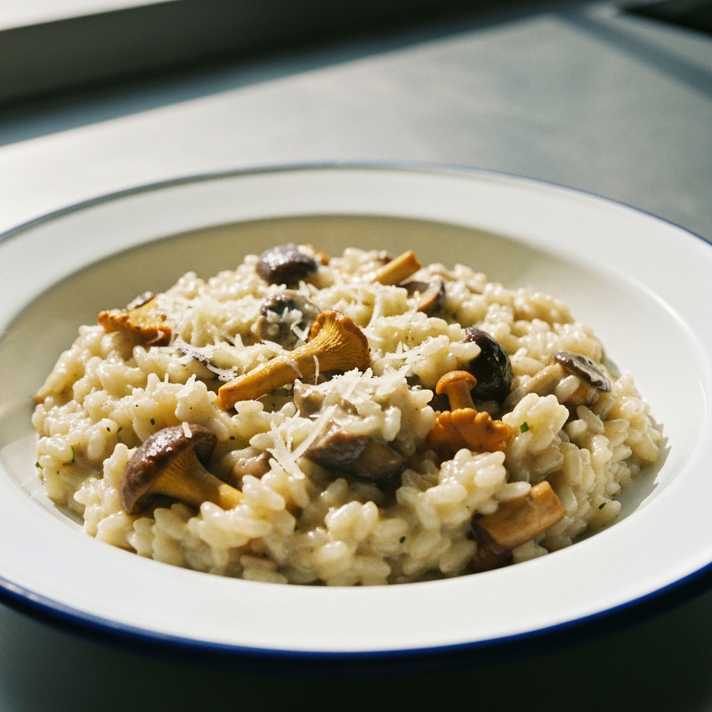 Risotto met wilde paddenstoelen en Parmezaanse kaas