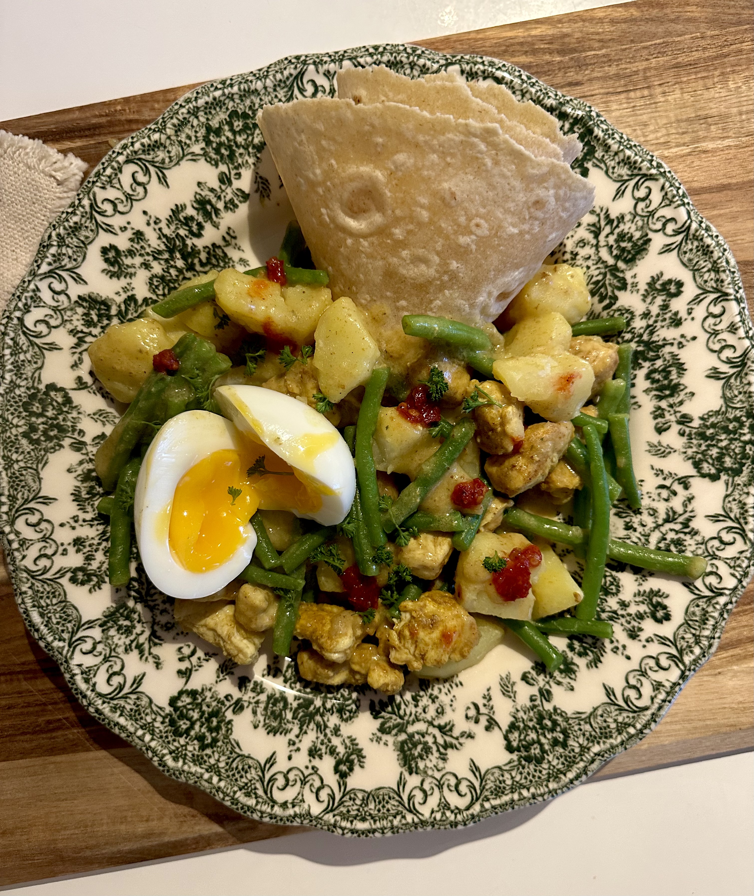 - 1 1/2 el Surinaamse kerrie masala of kerriepoeder (zonder ui/knoflook)
