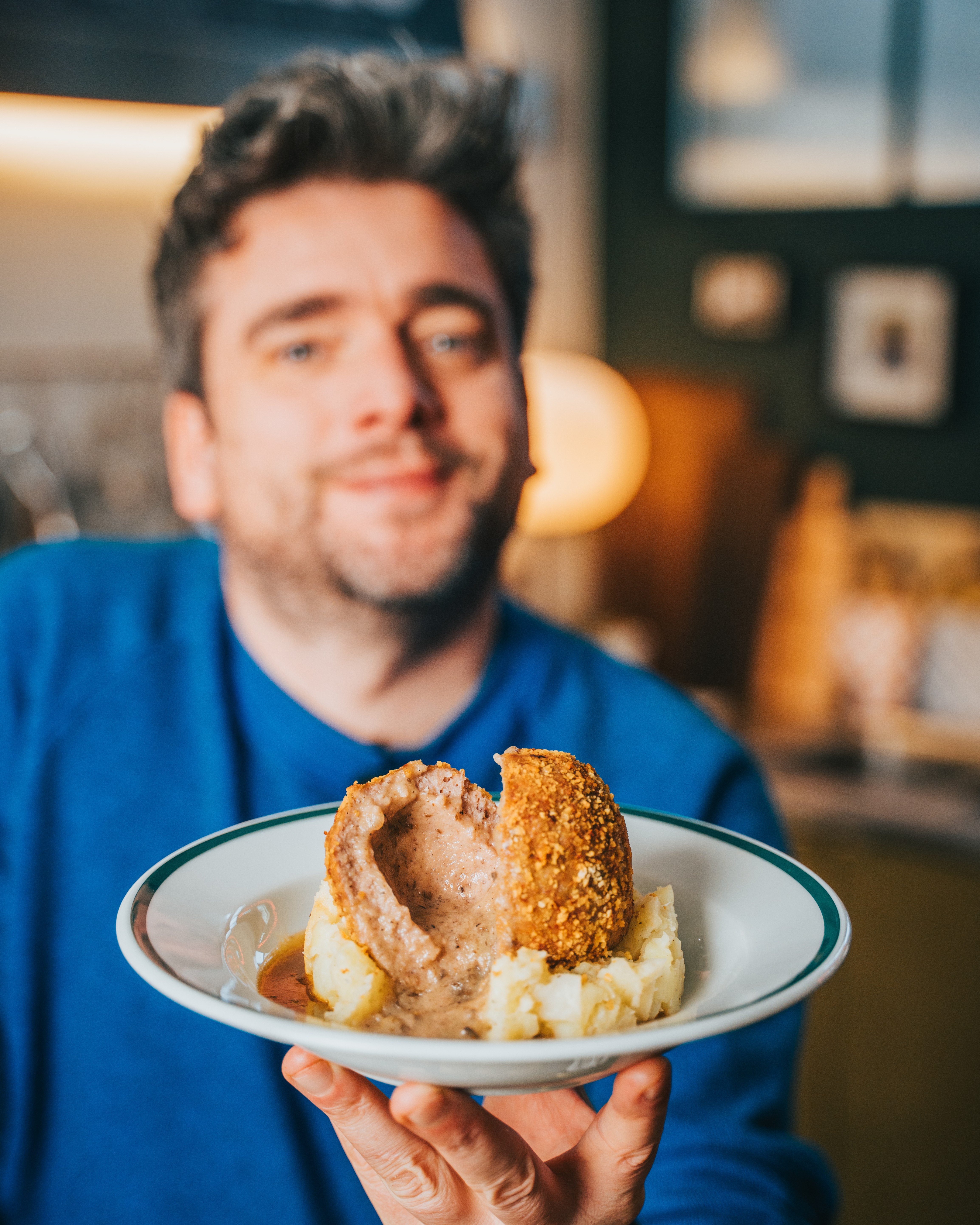 Stoemp de céleri rave et jus avec boulette Balls & Glory farcie